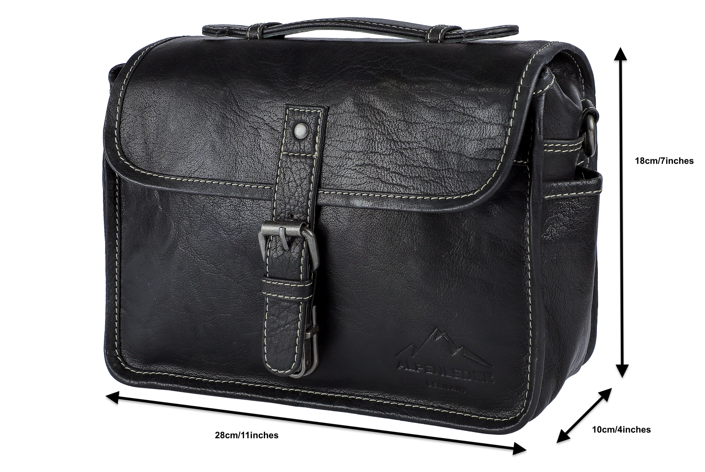 Alpenleder Leder Fototasche "Presse" Ebenholz