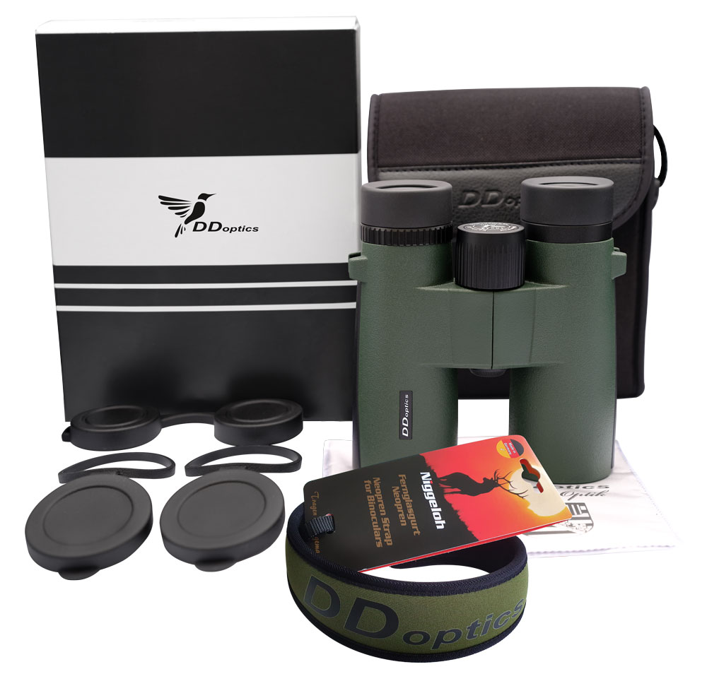 - wird mit Fernglastasche, Niggeloh-Trageriemen und Schutzkappen für Objektiv sowie Okular ausgeliefert