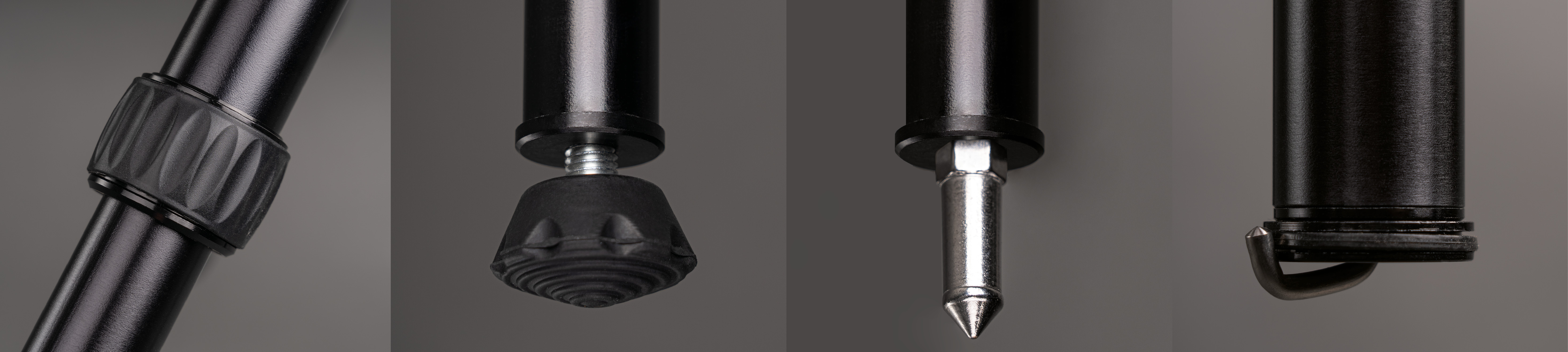 Drehverschlüssen lassen sich die Stativbeine stufenlos auf die gewünschte Höhe bis