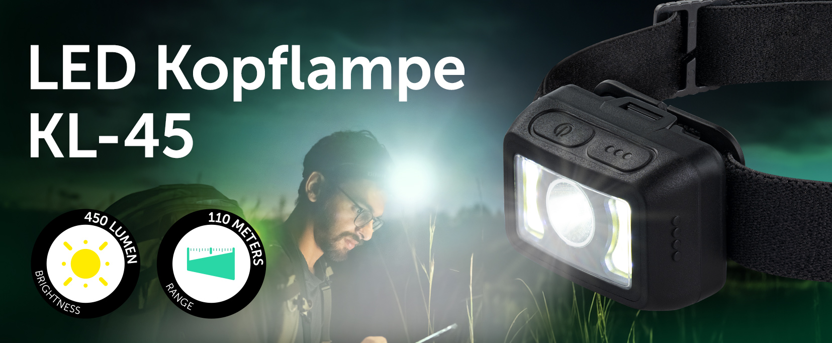 Mit einer maximalen Helligkeit von 450 Lumen wird die Dunkelheit zur Nebensache. Egal, ob du nachts unterwegs bist, oder in deiner Garage nach etwas suchst – die KL-45 bietet immer das nötige Licht.