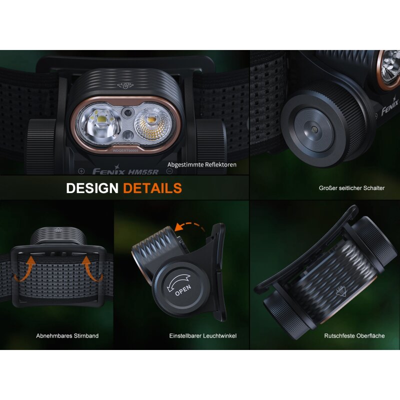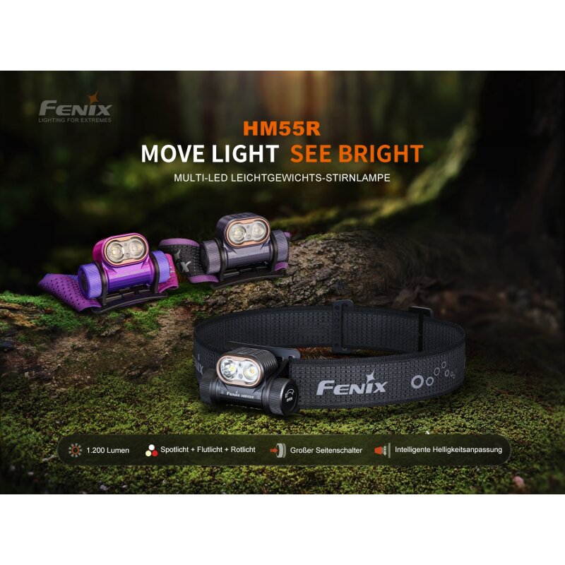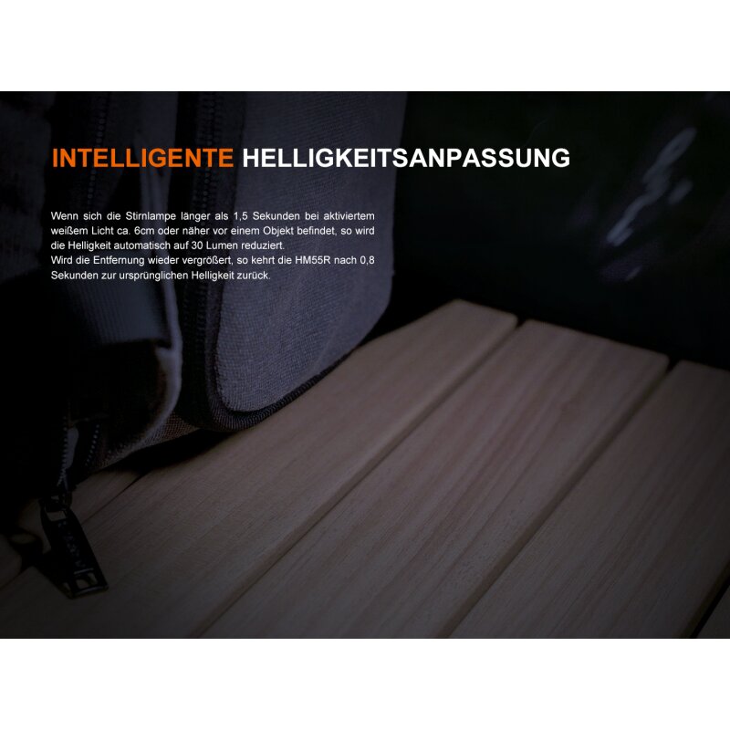 Fenix HM55R DEUTSCHE VERSION - mit 2 konstante rote Helligkeitsstufen 20 und 5 Lumen sowie blinkendes Rotlicht mit 5 Lumen. Es gibt zwei Versionen der Fenix HM55R.