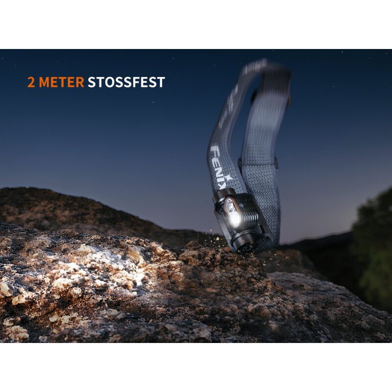Die englische Version hat nur eine konstante rote Helligkeitsstufe 5 Lumen sowie blinkendes Rotlicht mit 5 Lumen. Die Fenix HM55R liefert eine maximale Lichtleistung von 1.200 Lumen und eine maximale Leuchtweite von bis zu 175 Metern, wodurch sie vielseitig für verschiedene Situationen einsetzbar ist. Diese Stirnlampe wird mit einem austauschbaren Akku betrieben und ist über einen USB-Typ-C-Anschluss aufladbar, was eine lange Nutzungsdauer gewährleistet. Mit Schutzklasse IP68 und einer Stoßfestigkeit von 2 Metern ist diese Stirnlampe ein zuverlässiger Begleiter für all Ihre Abenteuer und täglichen Aufgaben.