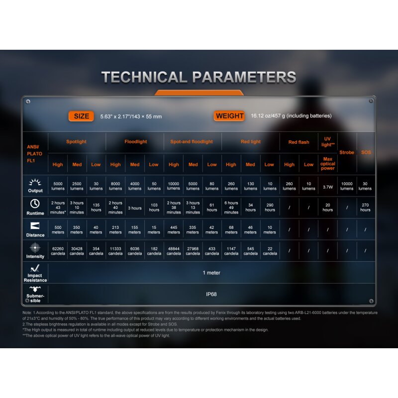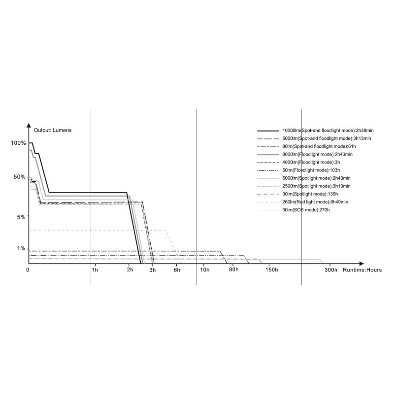 - 10.000 Lumen maximale Leistung, 500 Meter maximale Leuchtweite.