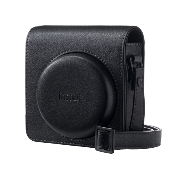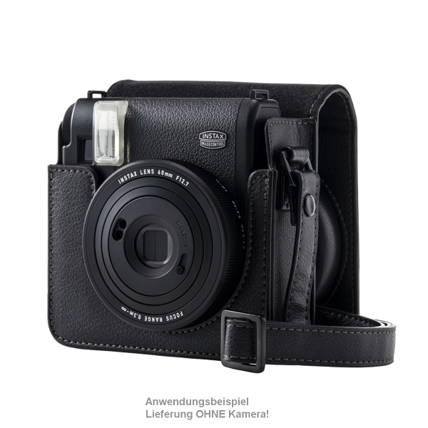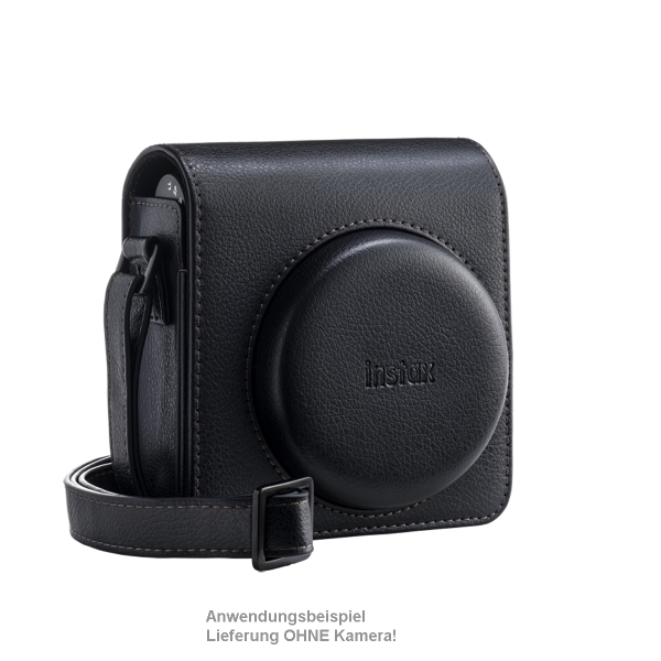 Passgenaue Kunstleder-Tasche in schwarz für die Fujifilm Instax mini 99 Kamera, inkl. Trageriemen