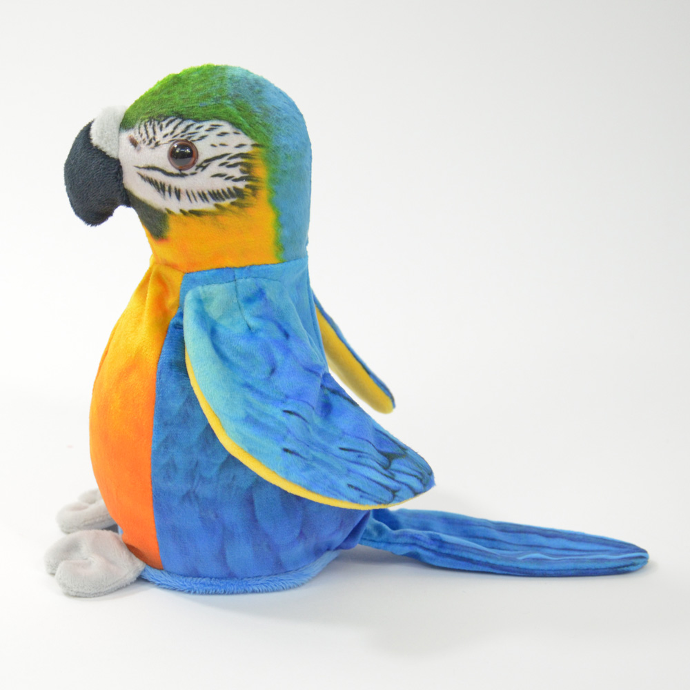 Der Laber-Papagei Sunny nimmt fast alles auf (maximal 6 Sekunden) und gibt es mit einer witzigen Stimme wieder. Dabei bewegt sich der Kopf hin und her während er mit den Flügeln schlägt.