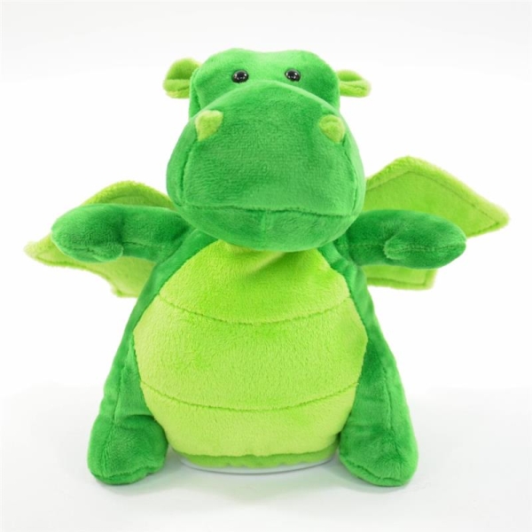 Sprich mit dem Laber-Drachen und er gibt es mit einer witzigen Stimme wieder. Dabei bewegt sich der Kopf hin und her. Der Drache äfft alles und jeden nach und bringt damit fast jeden zum Lachen.