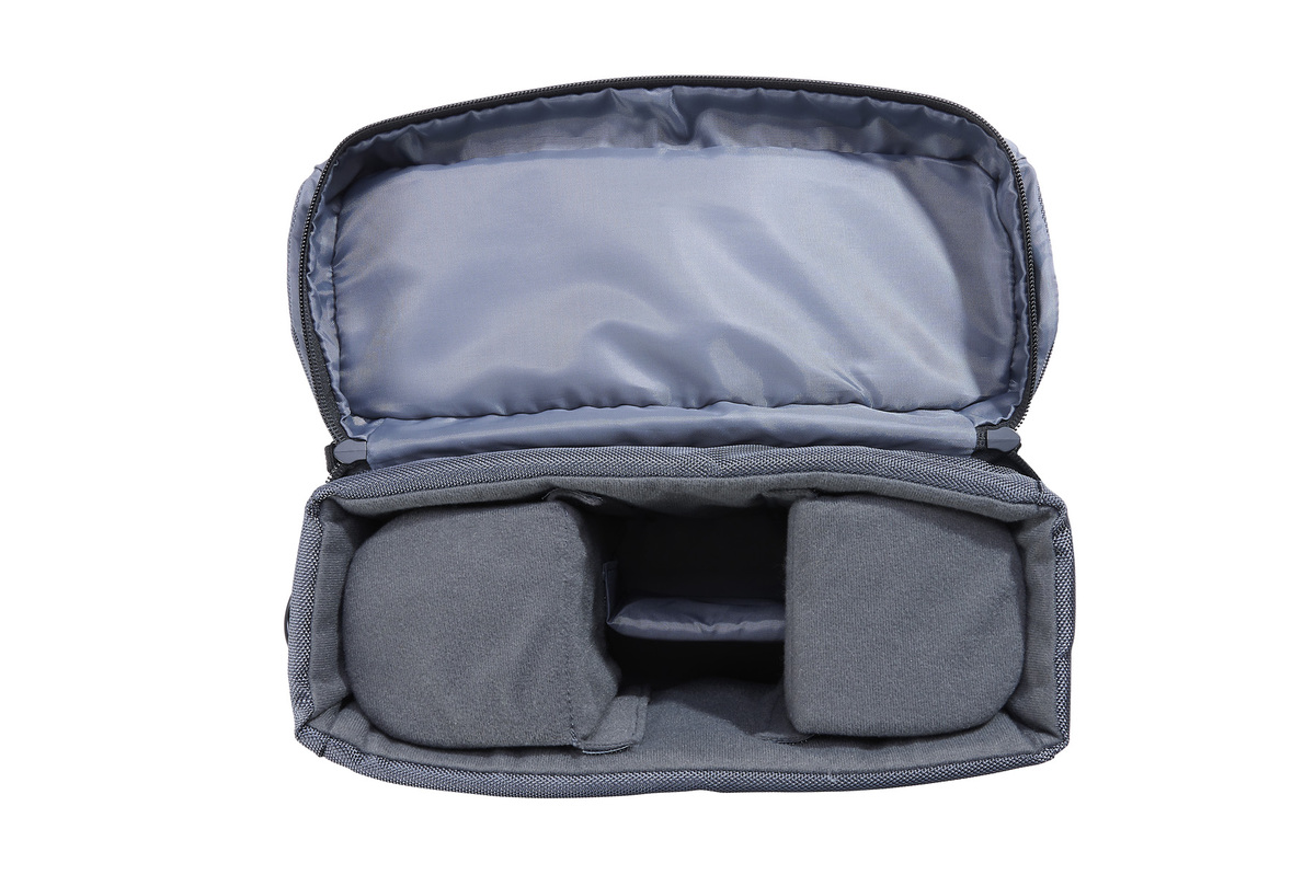 Die zwei seitlich außen angebrachten Taschen und ein Reißverschlussfach an der Vorderseite, bieten zusätzlichen Stauraum für Zubehör wie Speicherkarten, Akkus, Filter o. ä. Die Tasche wird vom Körper weg durch einen Doppelreißverschluss von oben komplett geöffnet. Die Tasche ist mit weichem Innenfutter in anthrazit ausgekleidet. Mit Klettband verstellbare, variable Trenner sorgen für eine individuelle Einteilung des Innenraums – ganz nach Umfang Ihrer Ausrüstung.