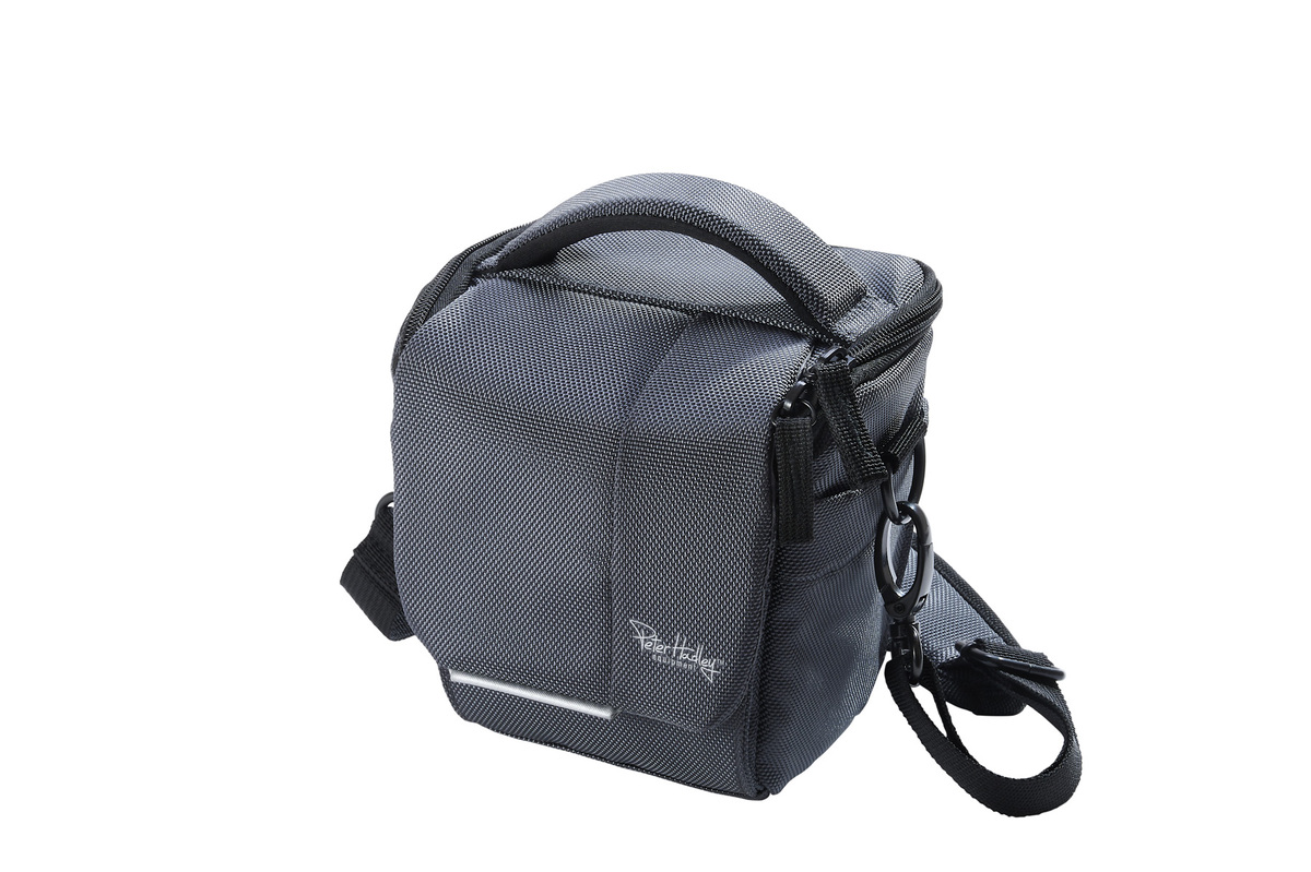 Die Tasche wird durch einen Doppelreißverschluss von oben vom Körper weg komplett geöffnet. Das weiche Innenfutter in dunkelgrau schützt das Gerät vor Stößen und Kratzern. Der Innenraum kann durch einen verstellbaren variablen Kletttrenner individuell eingeteilt werden. An der Rückseite befindet sich eine Gürtelschlaufe. Die Tasche verfügt über einen praktischen Tragegriff. Zusätzlich kann ein verstellbarer Tragegurt mit bequemer Schulterpolsterung an den Außenseiten rechts und links mit zwei Karabinern aus Metall sicher befestigt werden