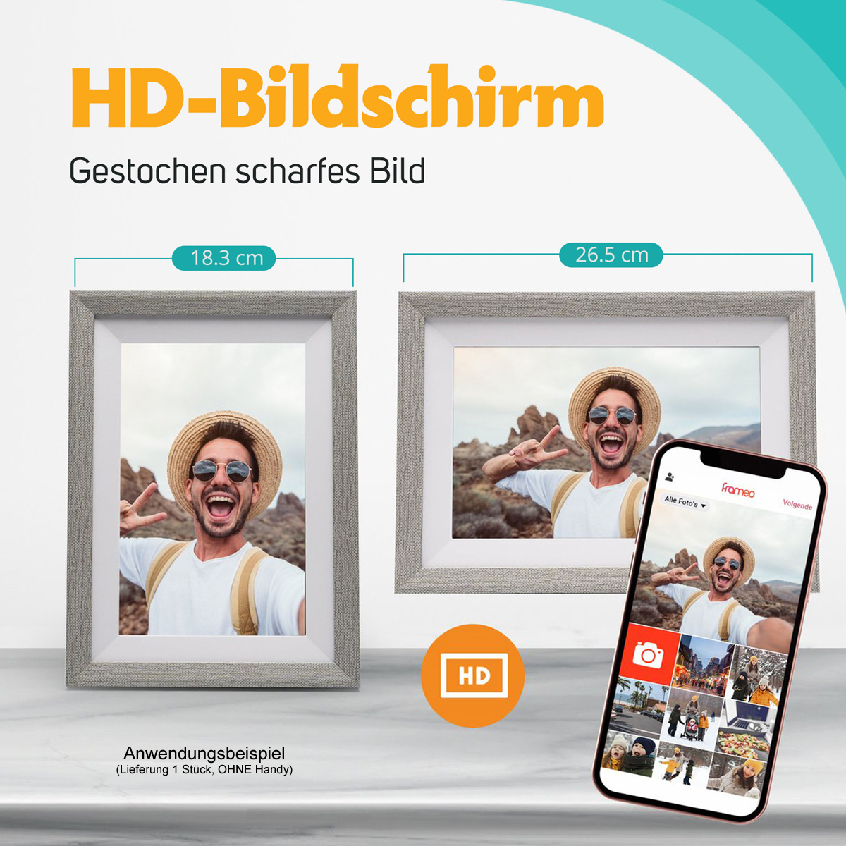 Mit diesem digitalen Frame können Sie alle Ihre Fotos leicht ansehen, sowohl kabellos über die App auf Ihrem Handy als auch über eine MicroSD-Karte.