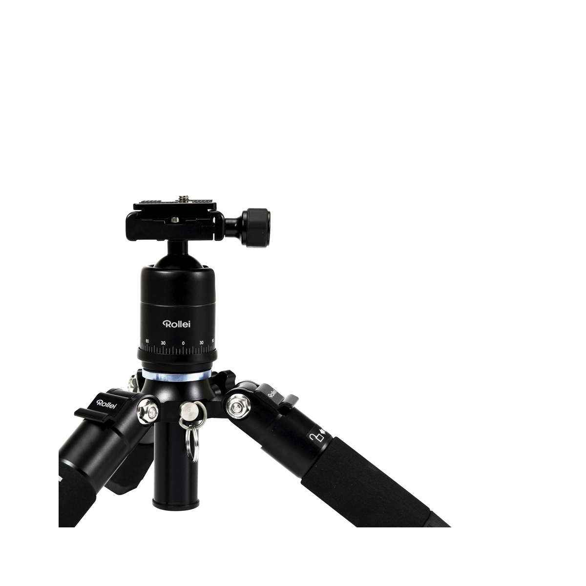 Im Set enthalten ist ein professioneller Kugelkopf, der sich um 180 Grad drehen und mit nur einer Schraube fixieren lässt. Ihre Kamera befestigen Sie mühelos über eine mitgelieferte Schnellkupplungsplatte mit integrierter Wasserwaage zur exakten horizontalen Ausrichtung. Die Stativbeine lassen sich nach oben und unten schwenken und die Mittelsäule ist umkehrbar zu montieren – für bodennahes Arbeiten in der Mikro- und Makrofotografie ein sehr wichtiges Feature. Mit dem Rollei Stativ Compact Traveler Mini M-1 verpassen Sie im Urlaub und bei Ihren Outdoor-Aktivitäten keine Fotogelegenheit mehr.