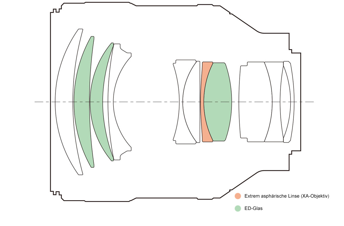 Ein XA-Element (extrem asphärisch) mit einer Oberflächenpräzision von 0,01 Mikrometer trägt zu der bis dato unerreichten Auflösung, zu atemberaubendem Bokeh und so zu einem neuen Ausdruckspotenzial bei.