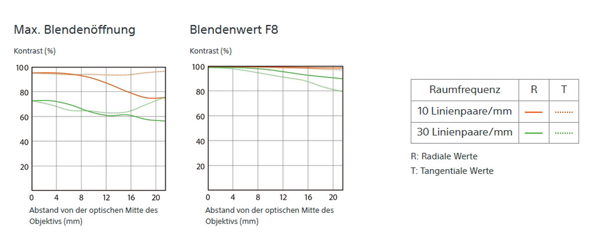MTF (Modulation Transfer Function) ist eine Funktion, die angibt, wie gut ein Objektiv feine Details – gemessen als Kontrastverhältnis – wiedergeben kann.